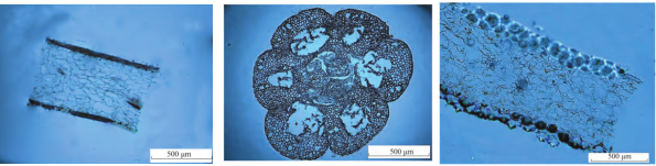 動(dòng)物組織常用HE(蘇木精-伊紅染色法 ( hematoxylin-eosin staining ))染色,可以精準(zhǔn)識(shí)別組織形態(tài)和病理學(xué)鑒定。然而植物的組織存在的纖維素和一些木質(zhì)素不適合HE染色方法,采取的是甲苯胺藍(lán)染色法,其基本原理是植物組織木質(zhì)化細(xì)胞壁呈藍(lán)綠色,其他組織成分呈紫藍(lán)色,可以精準(zhǔn)輔助判斷植物組織形態(tài)學(xué)和確定捕獲區(qū)域。