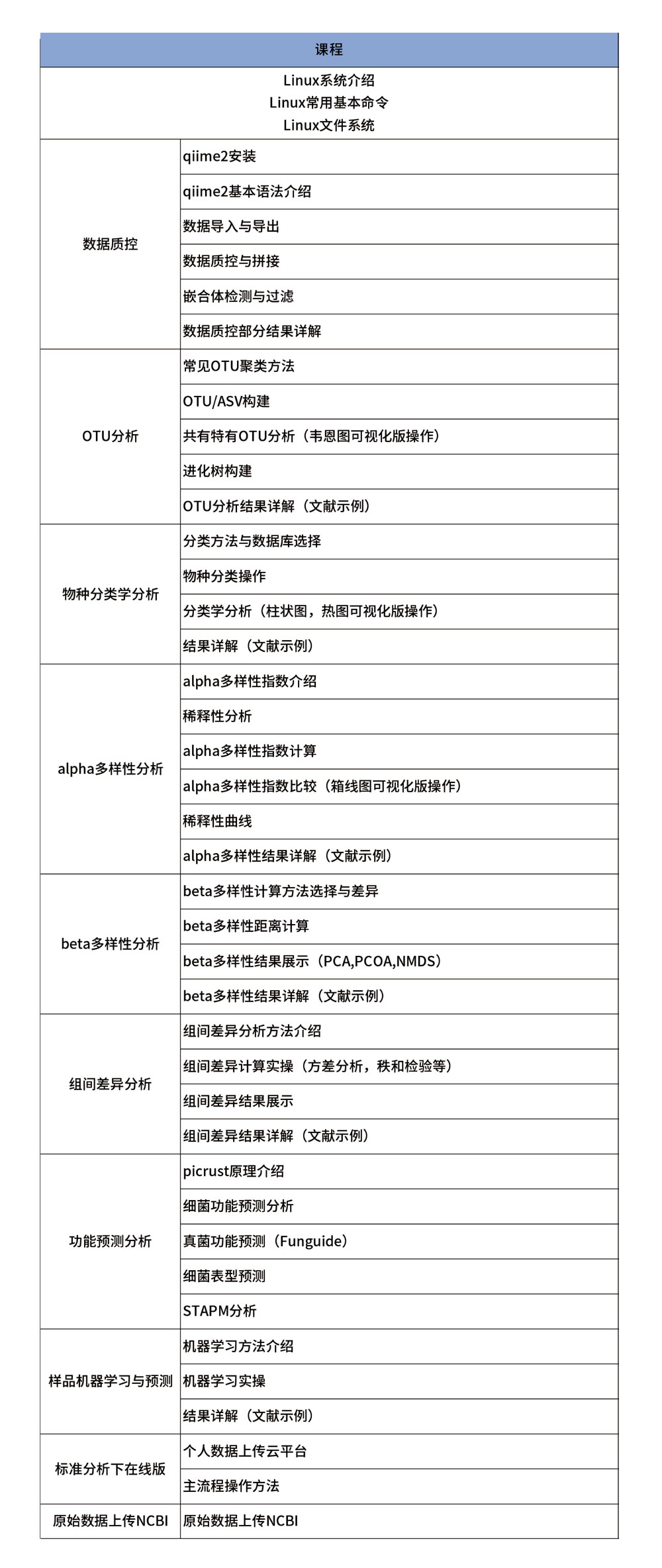本課程從IF=10及4分的SCI文章入手,從宏基因組背景介紹、實(shí)驗(yàn)(實(shí)驗(yàn)測(cè)序原理、建庫(kù)方法和流程、送樣注意事項(xiàng)等)、分析(下機(jī)數(shù)據(jù)質(zhì)控、有參注釋、無(wú)參組裝/預(yù)測(cè)/物種注釋/功能注釋等)、可視化作圖,讓您全面了解宏基因組分析每個(gè)過(guò)程,并結(jié)合案例文章,讓您了解宏基因組文章思路,助力科學(xué)研究。