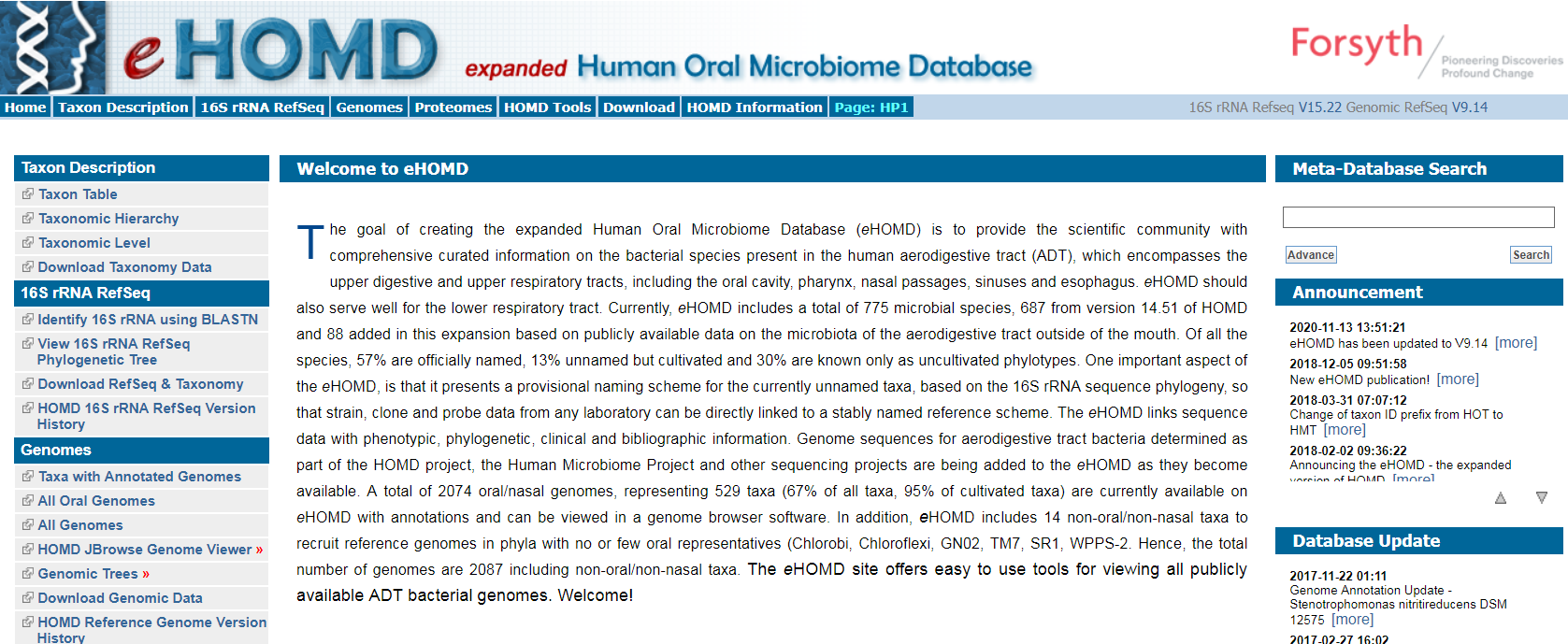3.人類(lèi)口腔微生物組數(shù)據(jù)庫(kù)(eHOMD):http://www.homd.org/