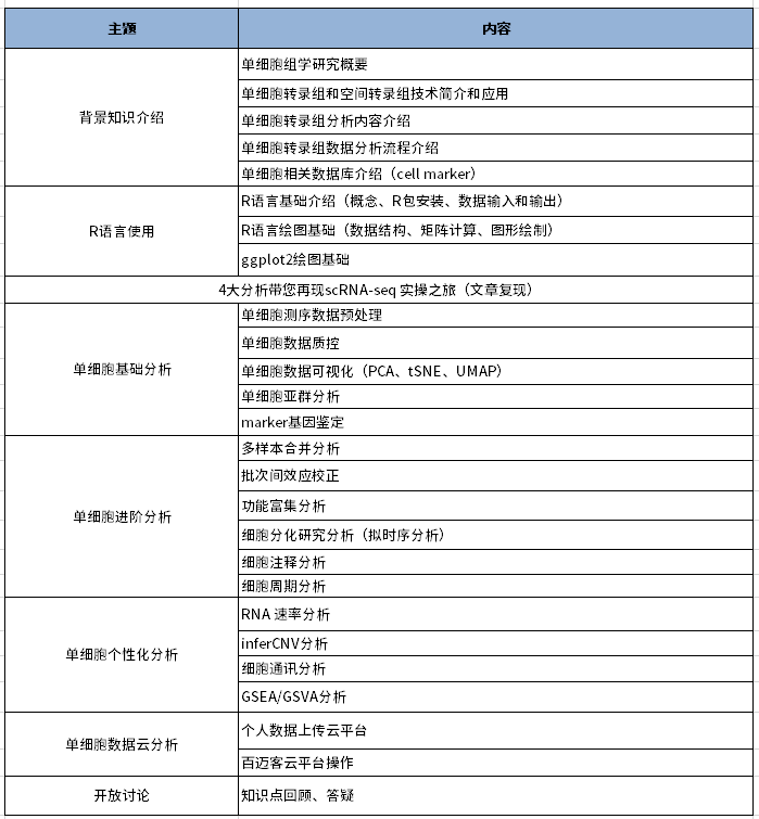 細胞和空間組學(xué)技術(shù)的快速發(fā)展正在開啟生命科學(xué)的時空多維新時代,為復(fù)雜疾病的細胞異質(zhì)性研究提供新視角,引領(lǐng)了生物學(xué)從“時間”維度走向“空間”維度,廣泛應(yīng)用于動植物生長發(fā)育、腫瘤精準(zhǔn)治療研究等方向。為了促進單細胞數(shù)據(jù)挖掘和分析,百邁客特開展的單細胞數(shù)據(jù)分析課程,將為您呈現(xiàn)細胞分群、細胞分化研究、marker基因鑒定等分析內(nèi)容,幫助研究者實現(xiàn)了單細胞數(shù)據(jù)更快、更準(zhǔn)、更高的分析轉(zhuǎn)化。
