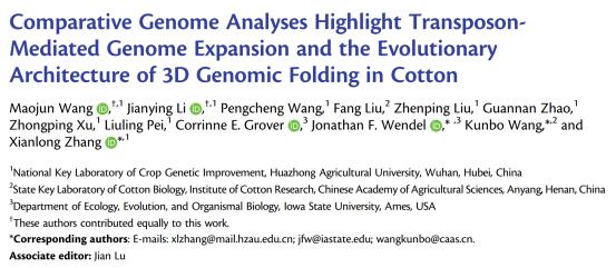 本次研究首次公布了棉屬中二倍體圓葉棉基因組,并對亞洲棉和雷蒙德氏棉基因組進(jìn)行了升級,解析了轉(zhuǎn)座子活動驅(qū)動的基因組大小進(jìn)化特征,從轉(zhuǎn)座子擴(kuò)增和染色質(zhì)空間結(jié)構(gòu)角度為棉花物種進(jìn)化提供新的見解,為植物中轉(zhuǎn)座子活動介導(dǎo)的轉(zhuǎn)錄調(diào)控進(jìn)化研究提供參考。