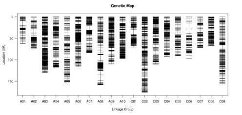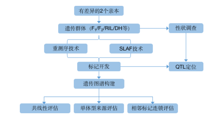 利用這些家系群體,基于高通量測序對群體進行基因分型,得到數(shù)以萬計的SNP標記,構建高密度遺傳圖譜,用于定位控制重要農藝性狀的QTL,是基因定位有效且常用的方法之一。