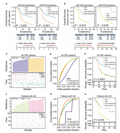 1、高水平的miR-425和miR-576與CRLM相關
