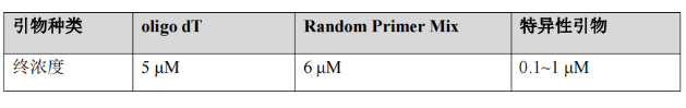 不同mRNA拷貝成cDNA的效率不同;因此,選擇合適的逆轉(zhuǎn)錄酶、二價(jià)陽(yáng)離子、dNTP、引物的選擇等非常重要。具體參數(shù)如下: