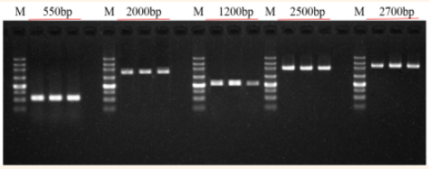 圖4:以1μl人肝癌細(xì)胞RNA為模板,用BiomarkerScript Ⅱ 1st Strand cDNA Synthesis Kit進(jìn)行逆轉(zhuǎn)錄,得到cDNA產(chǎn)物。再以100?ng cDNA為模板,用Biomarker HS 2× HF Master Mix進(jìn)行PCR擴(kuò)增,將得到的產(chǎn)物進(jìn)行瓊脂糖凝膠電泳,結(jié)果所示:擴(kuò)增條帶單一且產(chǎn)量高。