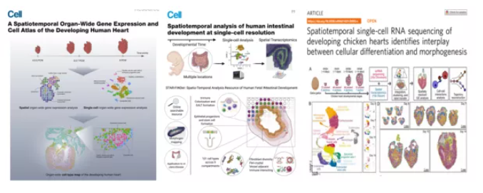 細(xì)胞在空間位置的異質(zhì)性,對于干細(xì)胞分化、組織發(fā)育和再生起著重要作用,空間轉(zhuǎn)錄組技術(shù)已經(jīng)在人的胚胎心臟、胚胎腸道和雞的胚胎心臟發(fā)育中得到應(yīng)用,探明了胚胎發(fā)育的動(dòng)態(tài)過程,空間組學(xué)發(fā)展可以清晰的描繪胚胎發(fā)育的藍(lán)圖。