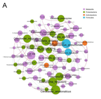圖2 糞便微生物群和代謝物的聯(lián)合分析鑒定COPD相關(guān)網(wǎng)絡(luò)