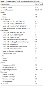 中文題目:全轉錄組RNA測序對急性髓系白血病的綜合診斷