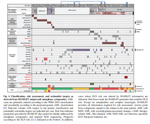 根據HAMLET和中期核型分析結果,99例病例可根據世衛(wèi)組織2016年和基因組分類進行重新分類(圖6)。HAMLET信息促進了6個案例的風險重新評估,值得注意的是通過NUP98-NSD1融合而無分類明確病變的AML,或通過EVIl過表達而無inv(3)(q21q26)來分配風險。