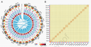 通過同源染色體比對,鑒定到3,107,171 個SNPs、 500,018 個indels、57,643 個PAVs以及632 個倒位。高雜合度區(qū)域的進化速度比其他區(qū)域更快。