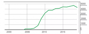 圖1 2000年到2019年12月,“GWAS”一詞在PubMed文章中每年出現(xiàn)的次數(shù)