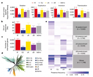 在用于GWAS的標記中,最初使用的是SSR標記,后來SNP標記成為常用標記。但是,研究人員逐漸意識到基于SNP標記的GWAS分析不足以解釋的群體中全部的遺傳變異。并且,隨著測序技術(shù)的發(fā)展,在人以及諸多動植物中發(fā)現(xiàn)了大規(guī)模的SVs [包括拷貝數(shù)變異(CNV)/存在缺失變異(PAV)和易位/倒置(translocations/inversions)]與疾病、馴化及重要農(nóng)藝性狀有關(guān)。本期推文,我們一起來看一下SVs在動植物群體研究中的進展。