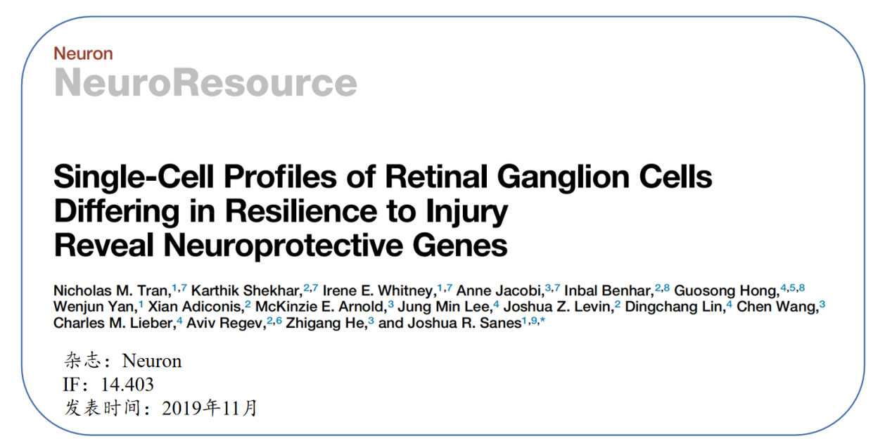 中樞神經(jīng)系統(tǒng)(CNS)無論是急性(例如創(chuàng)傷性損傷)還是慢性(例如神經(jīng)退行性疾?。┑膿p傷,都會導致不可逆轉的神經(jīng)元損害甚至死亡,而那些存活下來的神經(jīng)元有的能長出新的軸突并重新建立突觸連接。該研究通過單細胞轉錄組揭示了與視神經(jīng)擠壓 (ONC)后小鼠視網(wǎng)膜神經(jīng)節(jié)細胞(RGC)的選擇性恢復能力相關的差異表達程序。