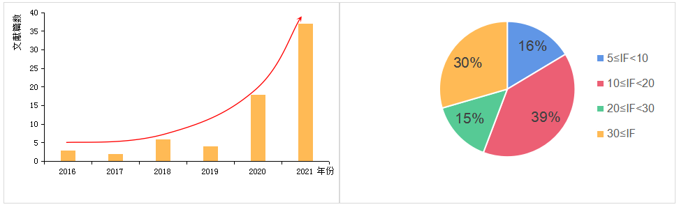 2016年-2021年空間轉(zhuǎn)錄組文章發(fā)表趨勢和影響因子分布