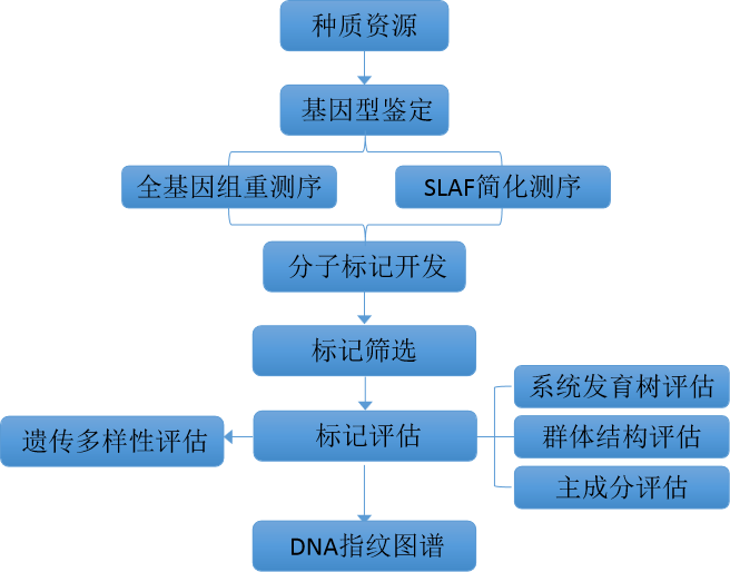 目前常用的SNP檢測與分型的方法主要有全基因組重測序、簡化基因組重測序和基因芯片技術(shù)三種。通過這些方法開發(fā)的SNP經(jīng)過變異檢測、注釋和篩選后,得到質(zhì)量高、代表性強、標記(組合)的材料區(qū)分度高、在基因組上分布均勻、特異性強的SNP標記作為DNA指紋圖譜的候選標記。