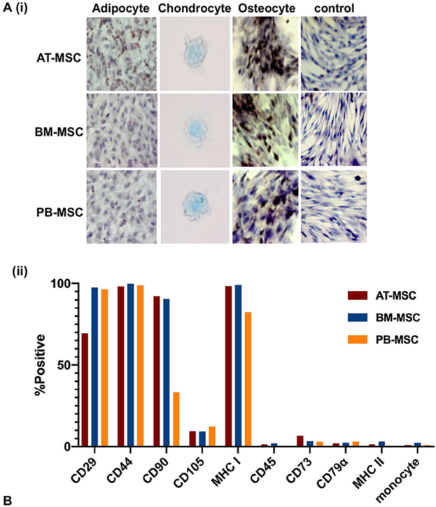 圖1從3個(gè)供者匹配的組織來(lái)源分離的馬間充質(zhì)基質(zhì)細(xì)胞(MSCs)的表征