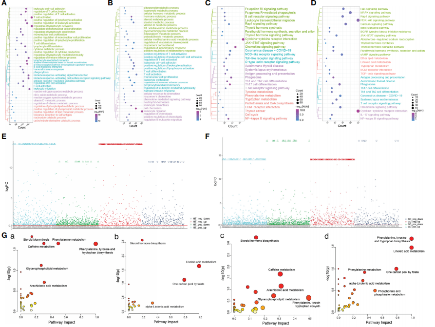 圖2?HT和GD中失調的基因表達與異常的免疫級聯(lián)和代謝信號傳導有關