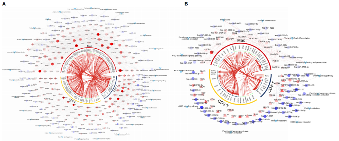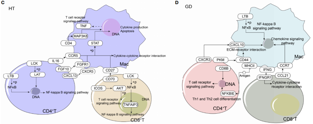 6、HT和GD微環(huán)境中T細胞和巨噬細胞的調控網絡分析