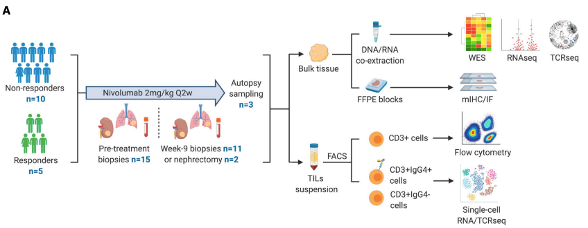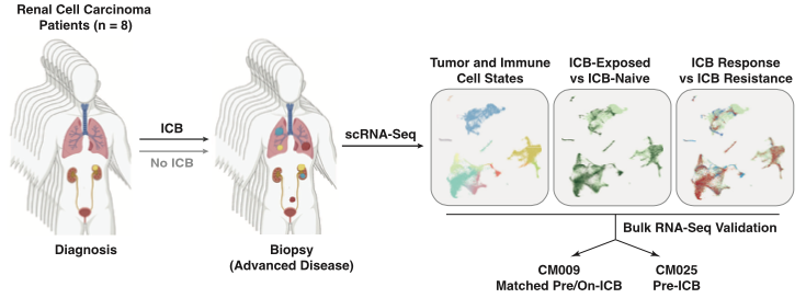 實驗材料:8例晚期腎細(xì)胞癌患者,5例ICB治療,3例未治療。
