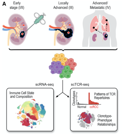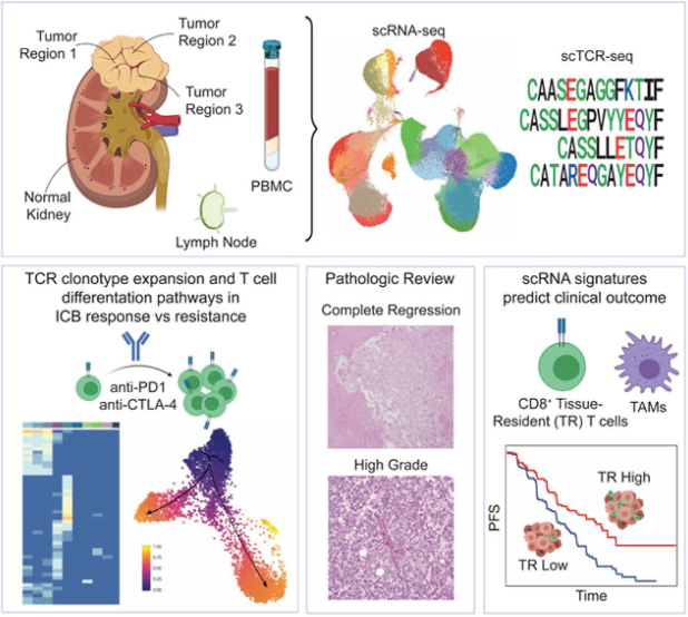 中文題目:單細(xì)胞測序?qū)CRCC中多區(qū)域免疫圖譜和組織駐留T細(xì)胞與腫瘤拓?fù)浣Y(jié)構(gòu)和免疫治療效果聯(lián)系起來
