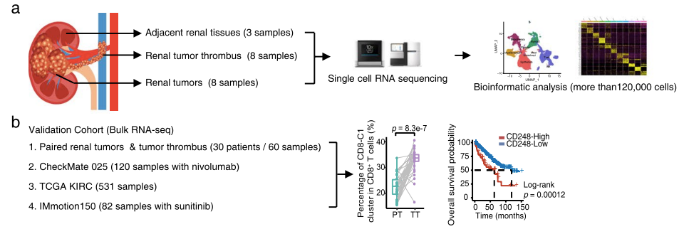 中文題目:單細(xì)胞轉(zhuǎn)錄組測序揭示腎癌和癌栓腫瘤微環(huán)境差異