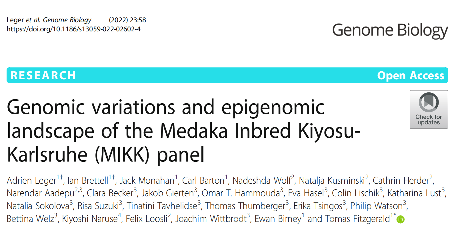 在與這篇文章一起發(fā)表的配套文章中,我們根據(jù)Illumina短讀序列與最近、完全組裝的參考基因組(日本南部medaka自交系HdrR)的比對,提供了80個個體MIKK面板系[4]的詳細(xì)遺傳特征。