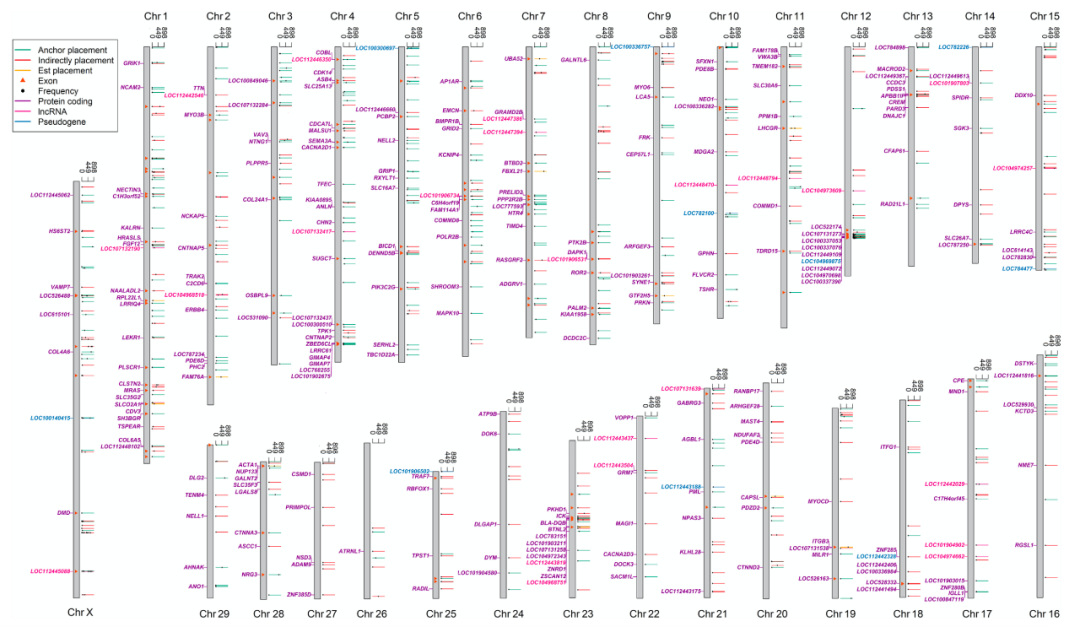 圖2泛基因組新序列在已知參考基因組上的分布及影響