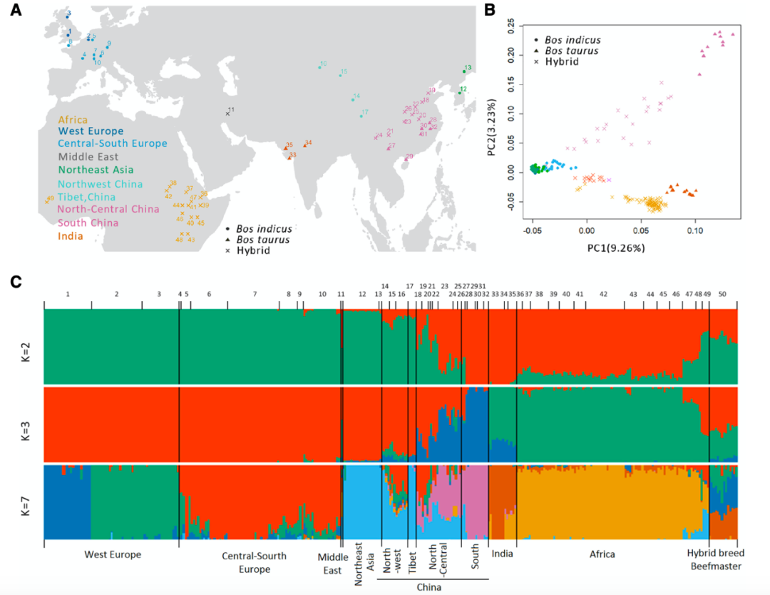圖3利用SV(缺失型變異)對世界牛品種展開精準群體學分析