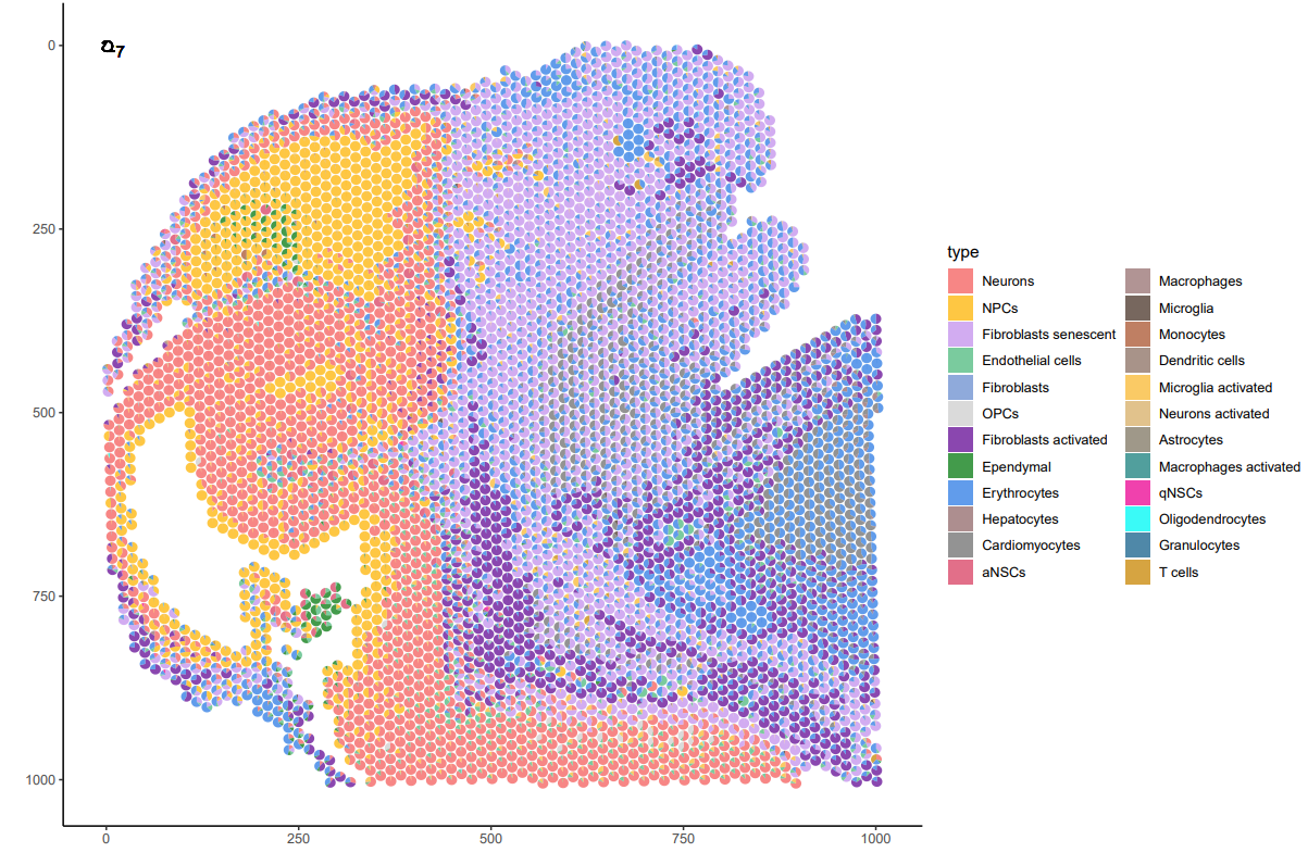 spatialDWLS首先使用細胞類型富集分析方法來確定哪些類型的細胞在每個位置具有較高的概率,然后使用阻尼加權(quán)最小二乘法(DWLS)的擴展來確定指定位置的細胞類型的組成。與現(xiàn)有的去卷積方法相比,關(guān)鍵區(qū)別在于SpatialDWLS包含額外的過濾步驟,以去除不相關(guān)的細胞類型,從而增強特異性。