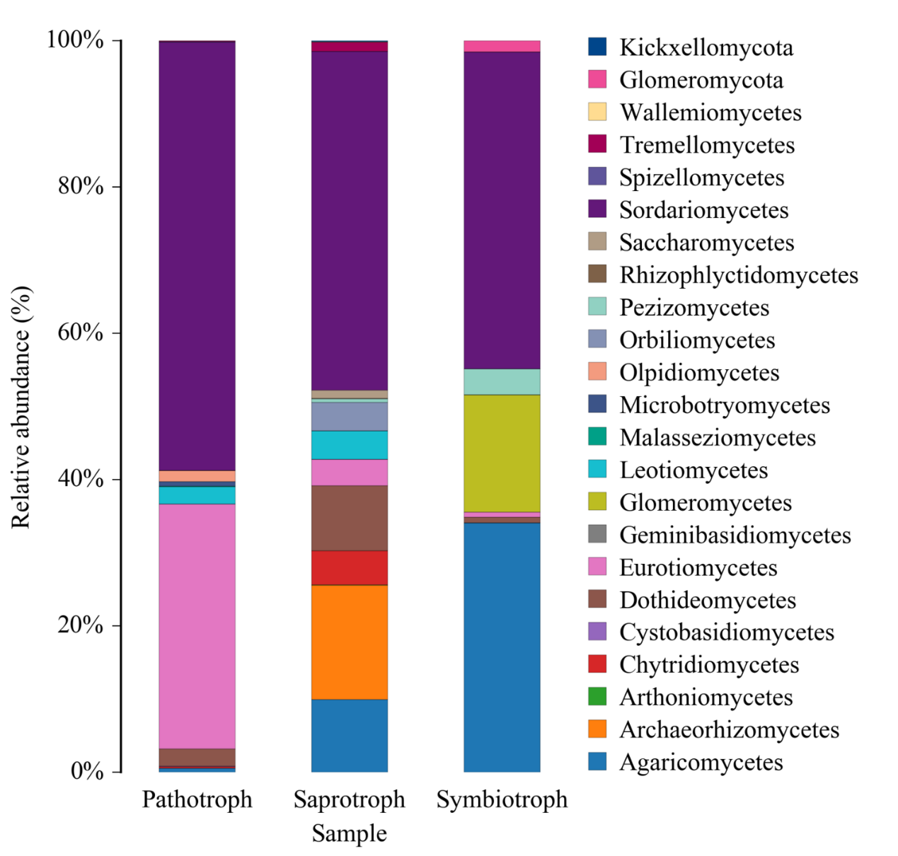 FUNGuild 基于目前已發(fā)表的文獻(xiàn)或權(quán)威網(wǎng)站數(shù)據(jù),首先根據(jù)營(yíng)養(yǎng)方式(trophicMode分類(lèi)系統(tǒng))將真菌分為三大類(lèi):