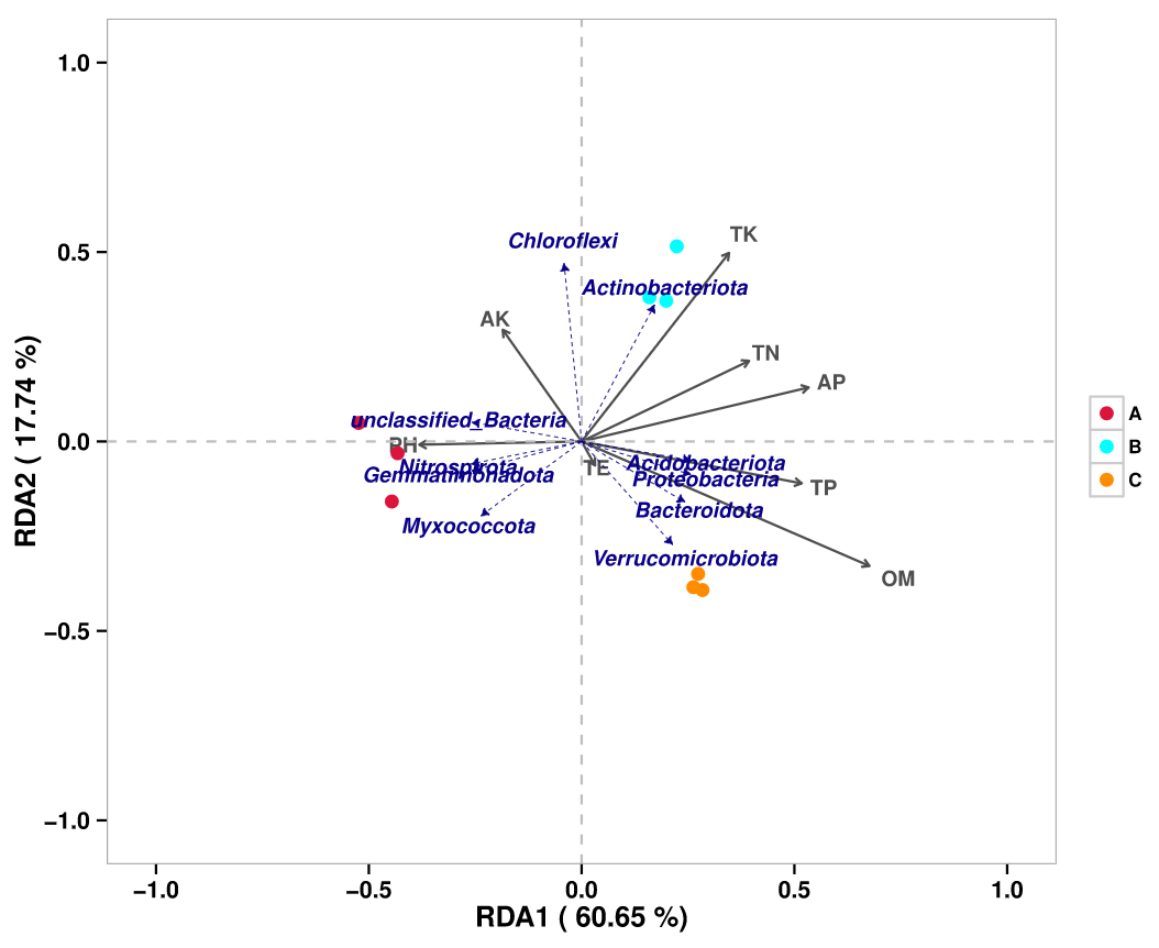 RDA/CCA分析:RDA(Redundancy analysis)/CCA(Canonical Correspondence analysis)是基于對(duì)應(yīng)分析發(fā)展的一種排序方法,RDA分析基于線性模型,CCA分析基于單峰模型,主要用來(lái)反映菌群或樣品與環(huán)境因子之間的關(guān)系。根據(jù)物種分布變化,選擇最*的分析模型。