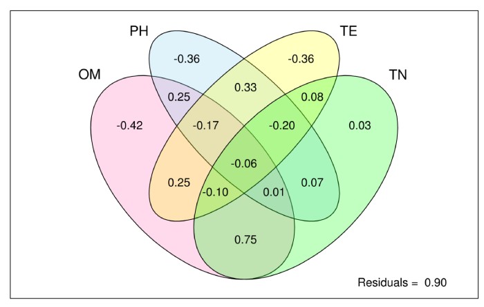 VPA分析(方差分解分析):VPA,全稱(chēng)Variance Partitioning Analysis,中文稱(chēng)為方差分解分析,該分析的目的是確定指定的環(huán)境因子對(duì)群落結(jié)構(gòu)變化的解釋比例。通常在CCA/RDA的排序分析方法可以得到所有參與分析的環(huán)境因子對(duì)群落變化的解釋比例。使用R語(yǔ)言vegan包(version:2.3-0),varpart函數(shù)進(jìn)行分析;分析前首先需要對(duì)環(huán)境因子進(jìn)行一個(gè)分類(lèi),一般支持2-4類(lèi),默認(rèn)使用大于等于2個(gè)環(huán)境因子進(jìn)行此分析。