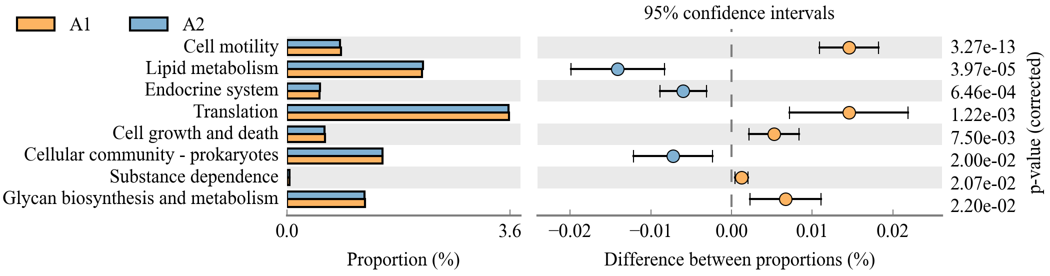 該分析可以對(duì)兩組或多組樣品的物種、基因或者功能進(jìn)行顯著性差異分析,并對(duì) p值進(jìn)行FDR校正。