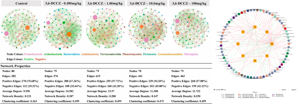 相關(guān)性網(wǎng)絡(luò)分析:網(wǎng)絡(luò)圖是相關(guān)性分析的一種表現(xiàn)形式,根據(jù)各個(gè)物種在各個(gè)樣品中的豐度以及變化情況,進(jìn)行斯皮爾曼(Spearman )秩相關(guān)分析并篩選相應(yīng)條件下的數(shù)據(jù)構(gòu)建相關(guān)性網(wǎng)絡(luò)?;诰W(wǎng)絡(luò)圖的分析,可以獲得物種在環(huán)境樣本中的共存關(guān)系,得到物種在同一環(huán)境下的相互作用的情況及重要的模式信息,進(jìn)一步解釋樣本間表型差異的形成機(jī)制。