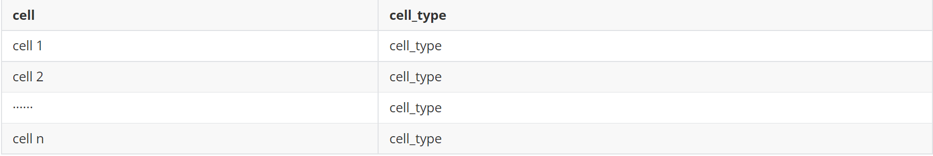 (1)細(xì)胞注釋文件(meta.txt,兩列,分別為細(xì)胞id和細(xì)胞類型)