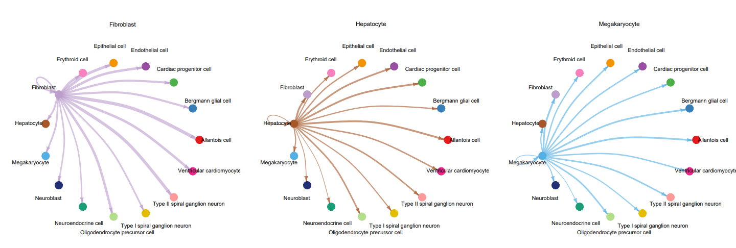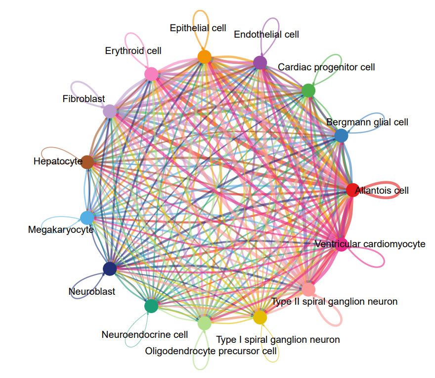 #這里借用另一款細(xì)胞通訊分析軟件——CellChat(https://github.com/sqjin/CellChat)的繪圖方法