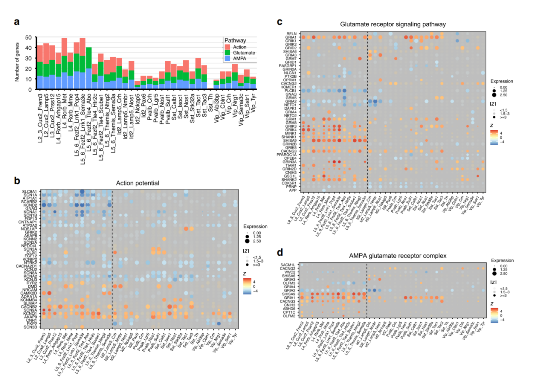 圖3鑒別可能導(dǎo)致癲癇發(fā)作的皮層神經(jīng)元亞型的信號通路和基因