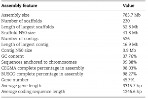 表1?野生枇杷基因組組裝統(tǒng)計及注釋