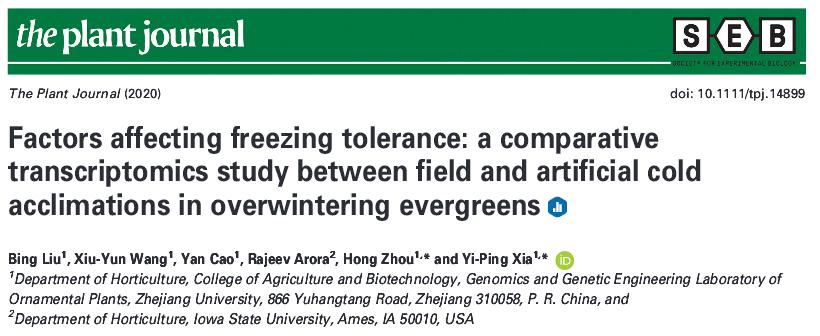 中文題目:影響耐凍性的因素:越冬常綠植物田間和人工低溫馴化之間的轉錄組學比較研究