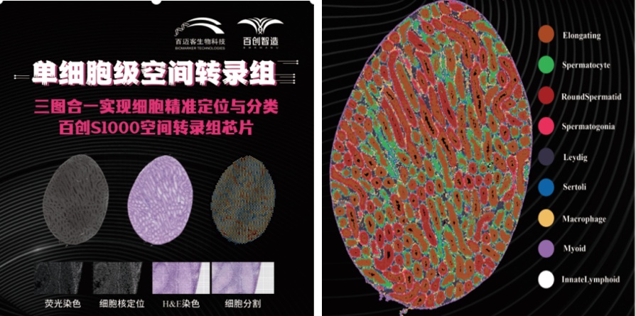 會上,百邁客生物旗下百創(chuàng)智造攜亞細胞級空間組學(xué)芯片BMKMANU S1000(百創(chuàng)S1000)細胞分割空間組學(xué)策略亮相大會,百創(chuàng)S1000空間轉(zhuǎn)錄組芯片作為高分辨率空間組學(xué)中一個可以同時實現(xiàn)原片熒光染色+HE染色+原位捕獲測序的技術(shù)受到了了各位與會專家的關(guān)注。