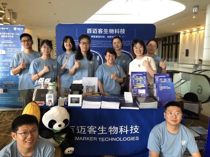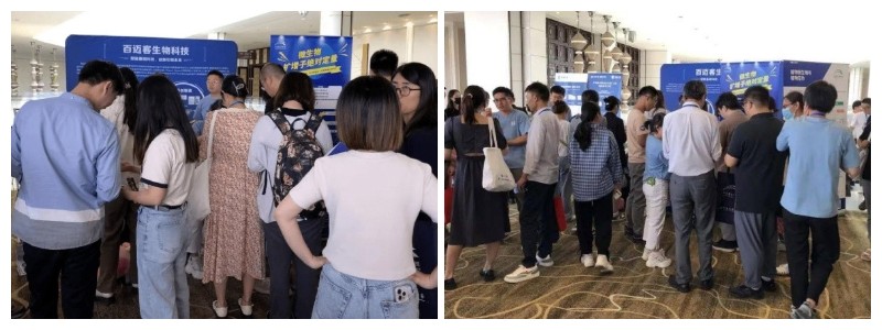 展會期間百邁客發(fā)揚以科研為中心的優(yōu)秀企業(yè)精神,全程設立展位,展示了全方位微生物組研究相關組學產品,包括前沿組學工具?絕對定量微生物組學測序,高數據量全長多樣性研究,?長度長宏基因組學,以及全方位探討生物學問題的?動植物-微生物互作多組學聯合分析應用產品,與前來參會的研究學者熱烈討論了地質微生物組學現有研究問題與發(fā)展前景,吸引了大量優(yōu)秀學者駐留探討。展位現場火爆,大家對不同的產品提出了不同的問題,現場的工作人員都做了詳細的解答和交流。