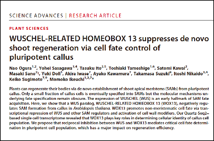 WOX13控制擬南芥愈傷組織細(xì)胞命運(yùn)來(lái)抑制新生芽再生