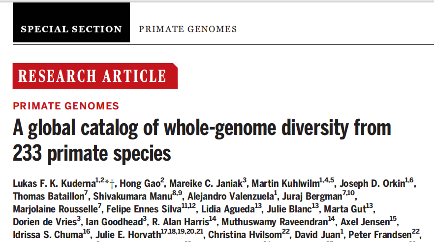 題目:233種靈長(zhǎng)類物種全基因組多樣性比較分析