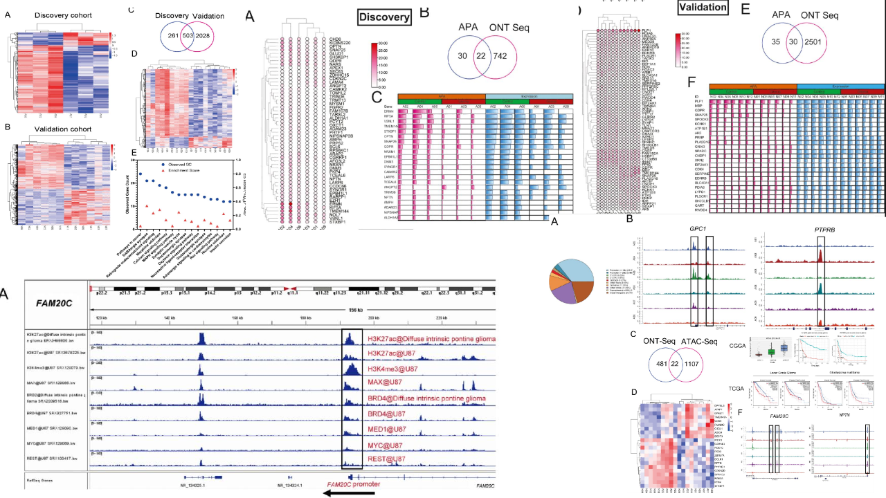 神經(jīng)膠質(zhì)瘤是神經(jīng)系統(tǒng)中最常見(jiàn)的原發(fā)性腫瘤,攻擊力極強(qiáng),約占所有腦腫瘤的80%,目前主要的癌癥治療方案,包括手術(shù)切除、放療和化療,都會(huì)導(dǎo)致預(yù)后不良和高死亡率,很難對(duì)膠質(zhì)瘤提供理想的治療效果,因此現(xiàn)在迫切需要探索新的有效策略以及膠質(zhì)瘤治療的潛在治療靶點(diǎn)。長(zhǎng)讀長(zhǎng)RNA測(cè)序技術(shù)已應(yīng)用在包括肝細(xì)胞癌和非小細(xì)胞肺癌等多種癌癥類(lèi)型中,ATAC-seq也已經(jīng)應(yīng)用于胰腺癌、胃癌和乳腺癌等多種腫瘤研究中。FAM20C是一種可調(diào)節(jié)分泌途徑中的各種網(wǎng)絡(luò)的分泌蛋白,主要負(fù)責(zé)礦化激酶,然而越來(lái)越多的研究表明,FAM20C?與包括包括乳腺癌、膀胱癌和結(jié)直腸癌在內(nèi)的多種癌癥廣泛相關(guān)。