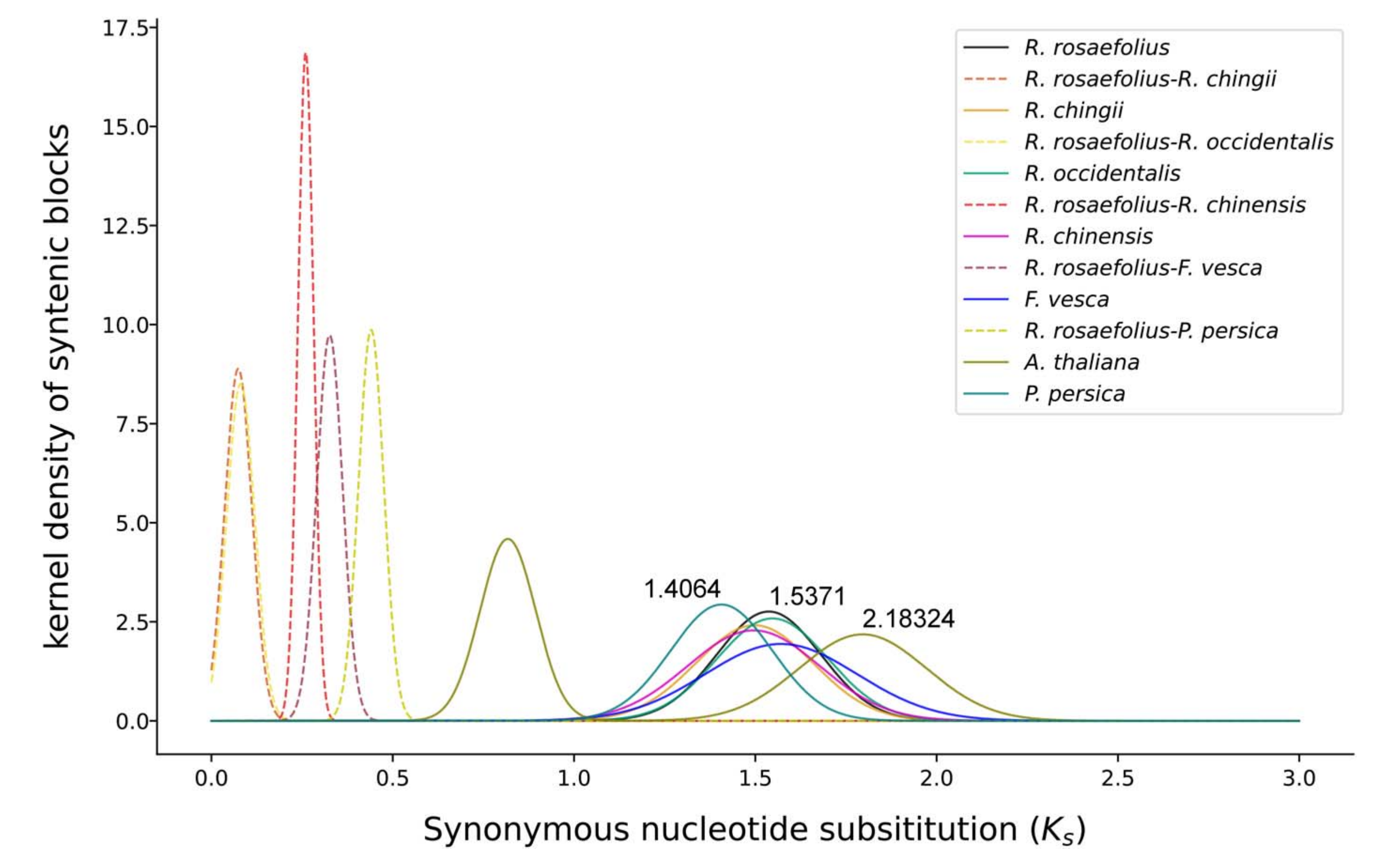 全基因組復(fù)制(WGD)分析發(fā)現(xiàn)。薔薇科其他成員與西方薔薇科同屬的共同祖先曾發(fā)生過(guò)WGD事件。
