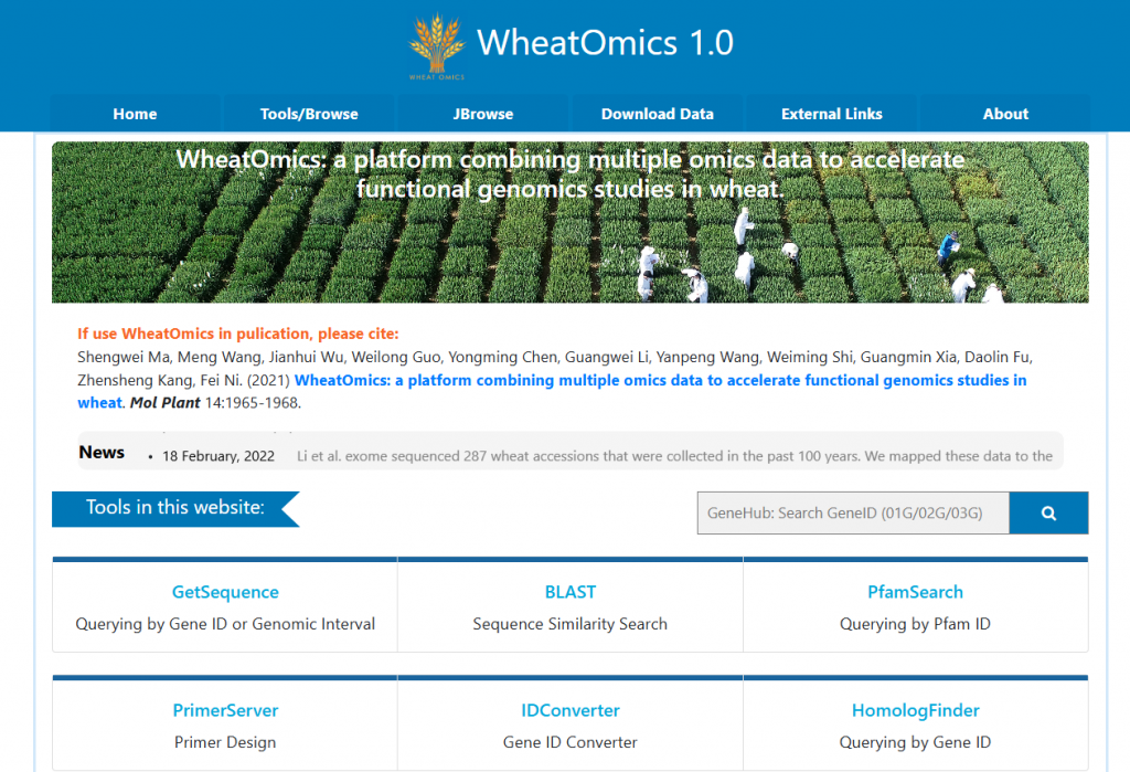 ☆?小麥基因組信息數(shù)據(jù)庫:由國際小麥基因組測序聯(lián)盟維護(hù)(IWGSC),可查找參考基因組序列、基因,BLAST,批量注釋等多個(gè)功能,可幫助科研工作者加速開發(fā)改良品種,為小麥基礎(chǔ)應(yīng)用科學(xué)提供支持。