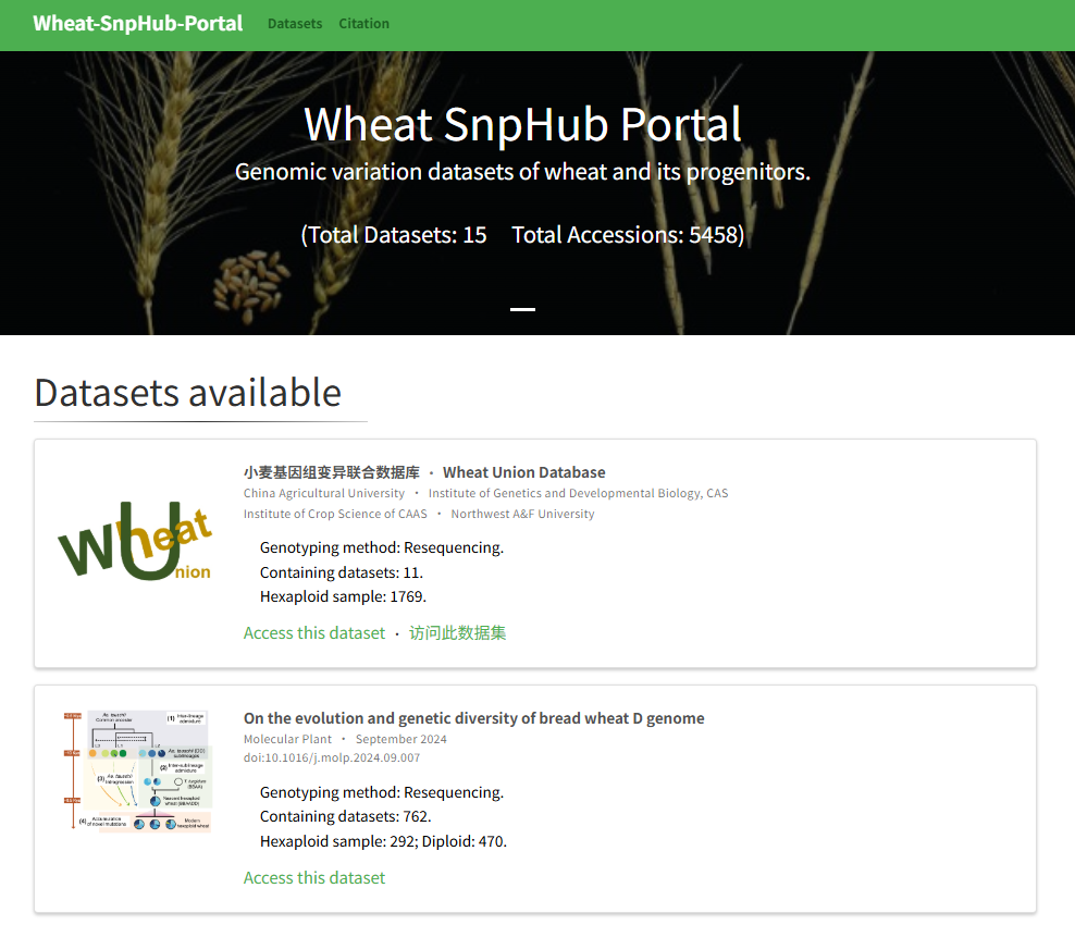 ☆?水稻、小麥和大豆的分子育種資源庫:這是一個(gè)集成數(shù)據(jù)庫,收集了群體測序、種質(zhì)資源、表型和各種基因組數(shù)據(jù)。