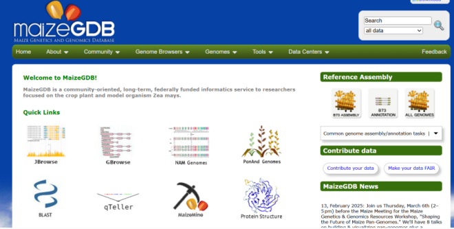 ☆?玉米基因組和遺傳分析平臺:數(shù)據(jù)庫包含了玉米的基因組序列、基因注釋、遺傳圖譜、突變體信息、表達(dá)數(shù)據(jù)、相關(guān)的文獻(xiàn)和研究工具。旨在支持玉米遺傳學(xué)和基因組學(xué)的研究,為科研工作者提供訪問和分析玉米的遺傳和基因組數(shù)據(jù)的平臺。