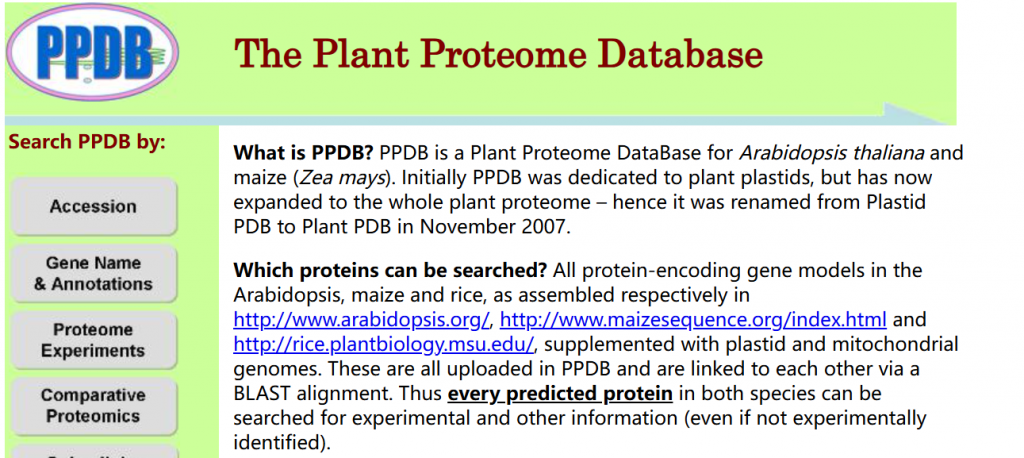 ☆?擬南芥和玉米蛋白質(zhì)組數(shù)據(jù)庫:為通過實(shí)驗(yàn)鑒定擬南芥和玉米中的蛋白質(zhì)提供了集成資源。內(nèi)部BLAST比對鏈接玉米和擬南芥信息,實(shí)驗(yàn)鑒定基于細(xì)胞類型特異性蛋白質(zhì)組或特定亞細(xì)胞蛋白質(zhì)組(例如葉綠體,類囊體,核苷)和總?cè)~蛋白質(zhì)組樣品的內(nèi)部質(zhì)譜(MS)。