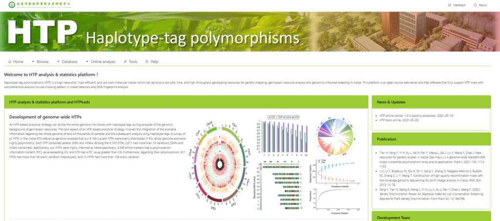 ☆?利用玉米單倍型標(biāo)簽多態(tài)性分析工具:HTP數(shù)據(jù)庫(HTPdb):該數(shù)據(jù)庫覆蓋了育種中常用的3,587個(gè)重要玉米自交系,其中包括172,921個(gè)非冗余的HTP等位基因變異,提供了豐富的單倍型標(biāo)簽資源。同時(shí),基于HTP標(biāo)記的特點(diǎn),研究人員在HTPTools中集成了智能區(qū)塊數(shù)據(jù)填充算法,當(dāng)僅需獲取少量HTP標(biāo)記的基因型時(shí),可以通過該功能快速地獲取對應(yīng)區(qū)塊的完整數(shù)據(jù)。